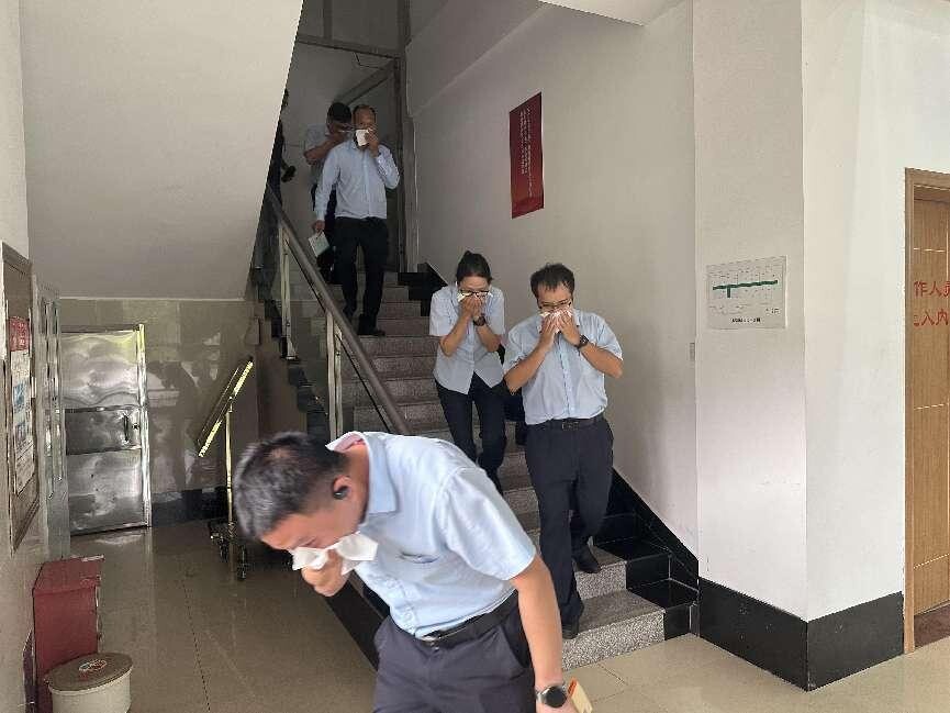 活动首先由我馆邀请的专业消防工程师为干部职工讲授安全教育培训课。消防工程师从警示、防火、灭火、逃生四个篇章入手开展讲解,让干部职工们系统、直观地学习了解消防安全知识,并动手学习如何正确使用灭火器。培训结束后,我馆随即开展消防安全逃生演练。消防工程师激活演练装置后,会场内升腾起滚滚浓烟,尖锐又急促的消防警报声立时响起,演练正式开始。安全管理人迅速指引干部职工们按照预定的安全疏散路线,快速而有序地撤离至安全区域。与此同时,在充分研判火势的情况下,我馆安全小组迅速启动灭火行动,成功、迅速地扑灭了火势。