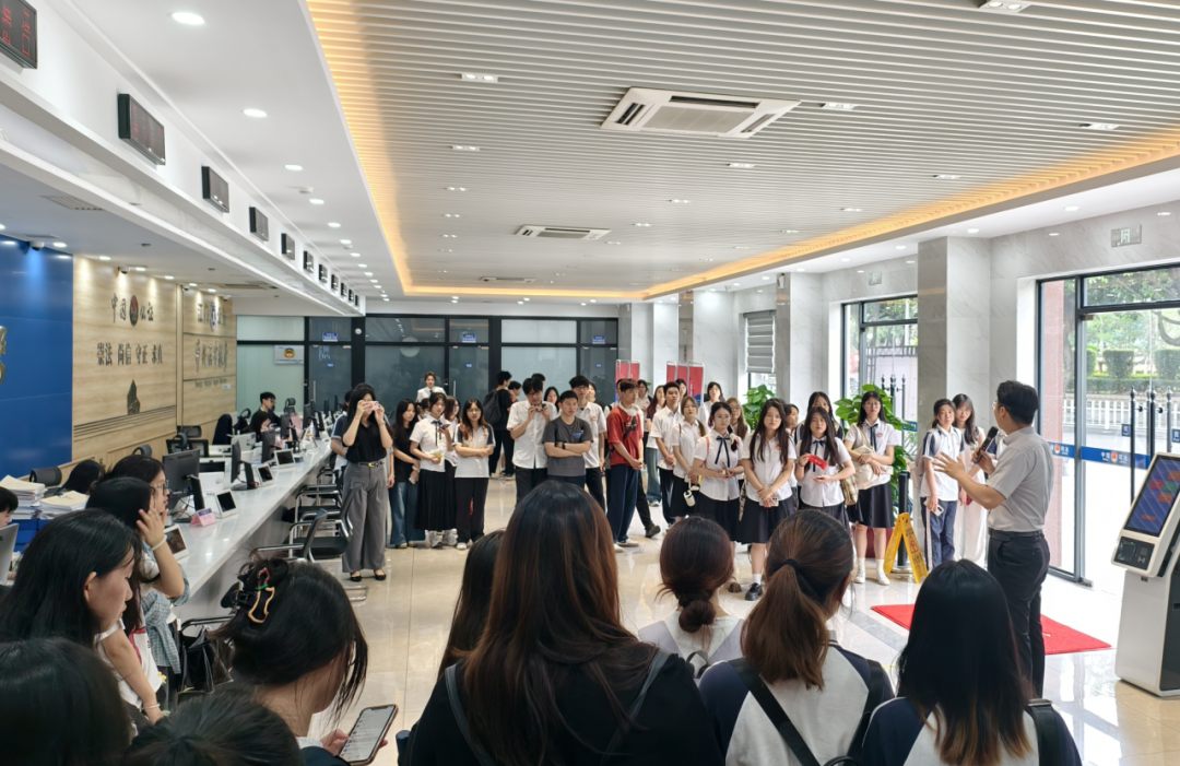 活动首站,一行人来到我市法治地标之一的江门市公共法律服务中心。学生们在工作人员的介绍和指引下,对江门市公共法律服务中心的建设历程、功能定位、服务内容、特色亮点等方面进行深入了解,并先后参观了位于其中的江门市青少年法治教育实践基地和五邑公证处,进一步掌握法治的基本概念及常识,有效深化了对法治江门建设的认识理解。