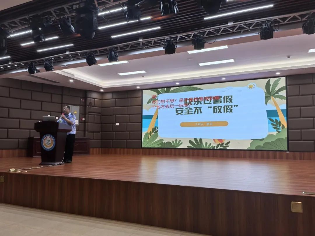 在特殊教育学校的讲座现场,法治副校长胡卫同志没有选择复杂的说教,而是用生动易懂的PPT图文以及精心准备的小视频,围绕暑期最易出现的溺水、交通、拐骗、消防、饮食、居家、防疫等安全隐患展开讲解。从“不跟陌生人走”的防拐提示,到“勿玩家中的水气电”的安全提醒,再到“游泳时必须要有家长陪伴”的防溺水警示,主讲人放慢语速、配合动作,确保每个孩子都能接收和理解。