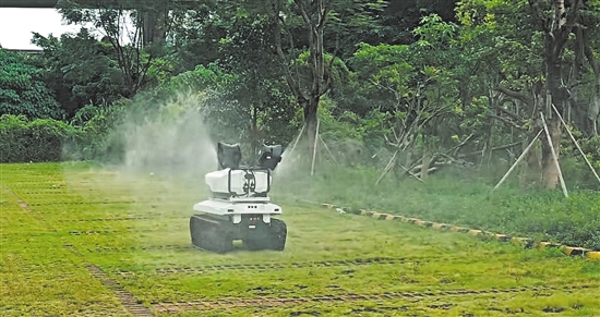 江门产研院联合相关机构研发的履带式室外智能喷洒灭蚊自动化设备已投入使用。