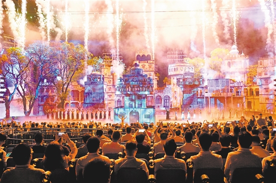 10月16日晚上,赤坎华侨古镇火秀剧场上演精彩演出。郭永乐 摄
