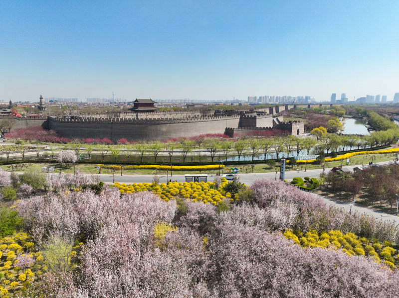 河北省正定古城南城门春色(2025年3月31日摄,无人机照片)。新华社发(梁子栋 摄)