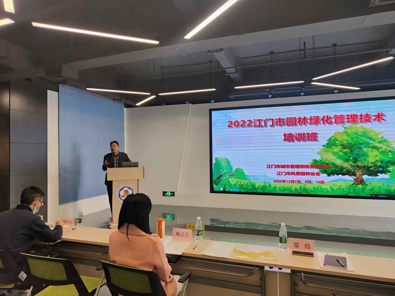 本次培训邀请了谭广文教授级园林高级工程师、谢腾芳风景园林施工高级工程师、唐文超园林高级工程师、王胜坤博士、周燕爱律师五位专家,分别就国家、省园林城市复查,簕杜鹃种植技术,城市绿化相关法规文件,江门市园林绿化企业信用管理评价标准,树木保护专章编制和古树名木保护管理相关技术、要求,城市有害生物防控技术等内容进行详细讲解,五位老师结合日常研究、实践工作的心得体会向学员们作深入浅出、图文并茂的讲解,并与学员进行互动研讨。