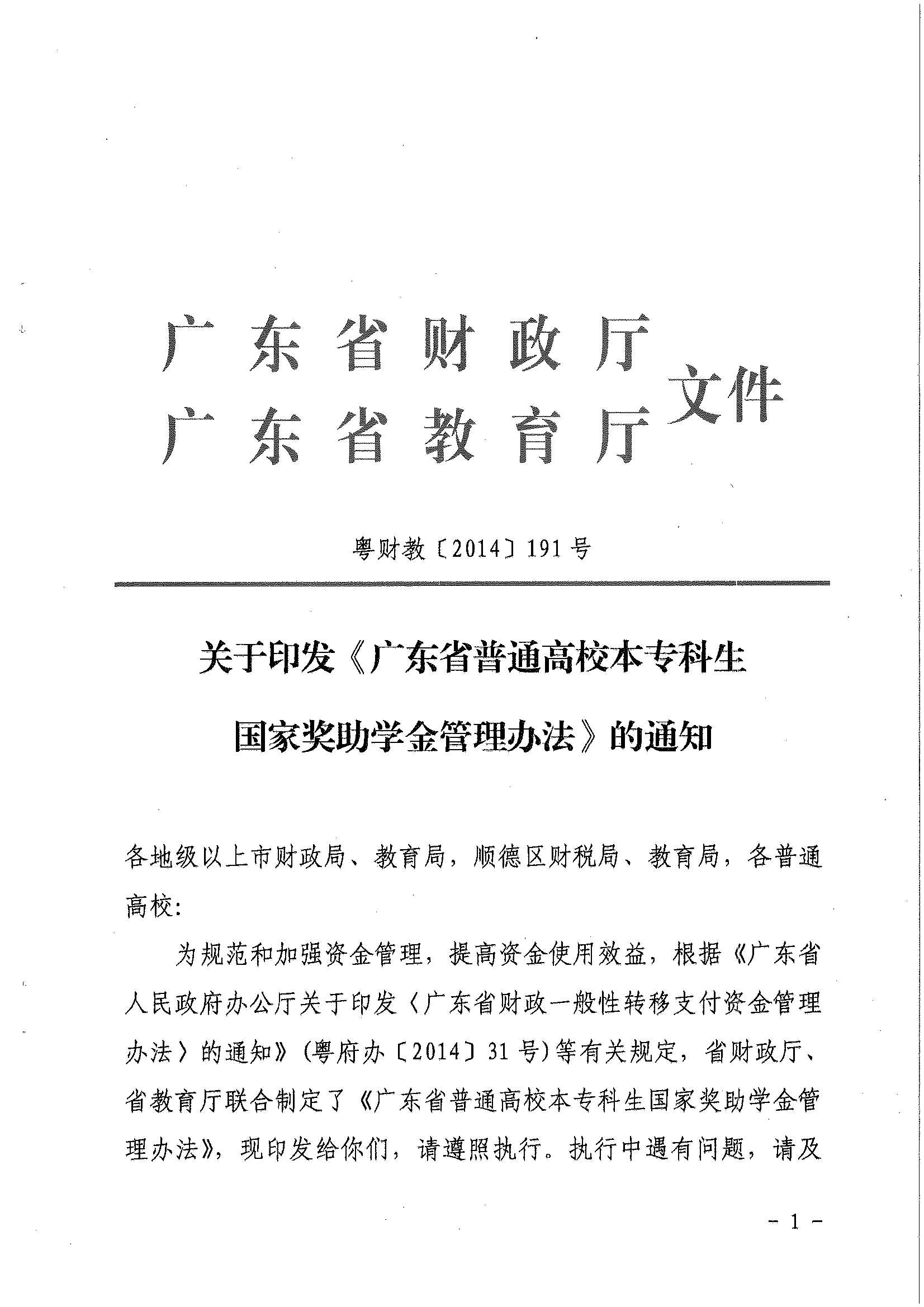 关于印发〈广东省普通高校本专科生国家奖助学金管理办法〉的通知