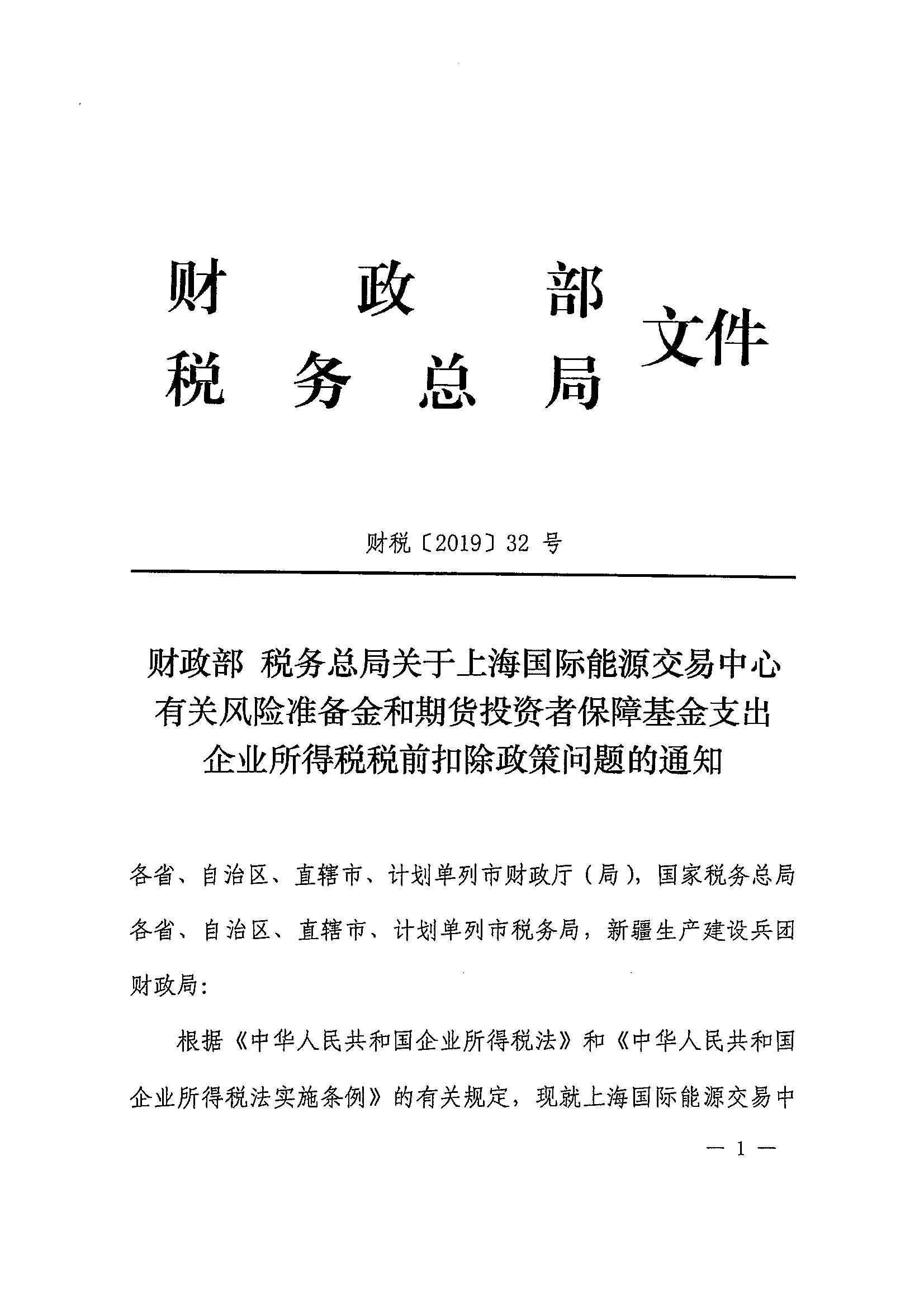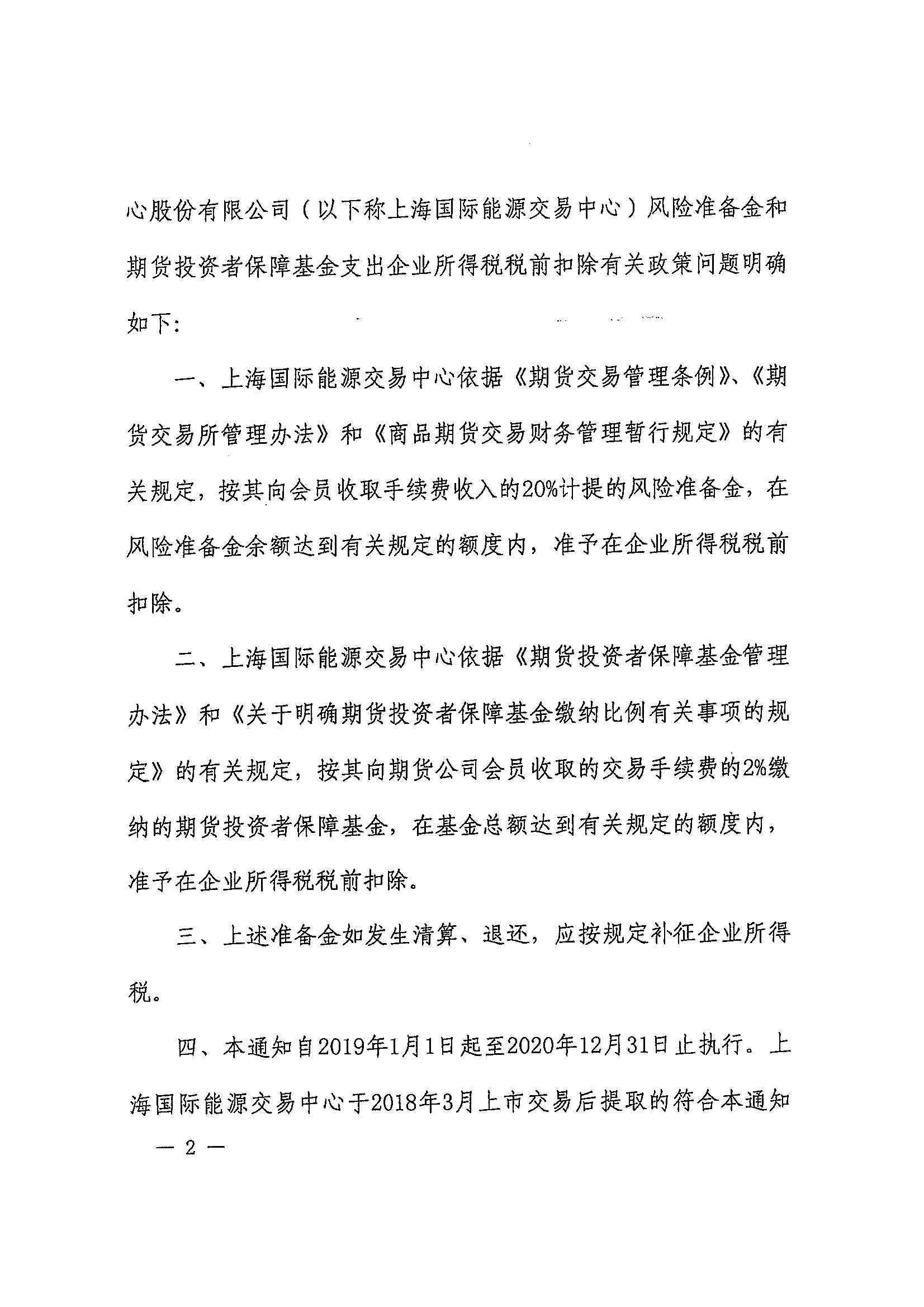 财政部 税务总局关于上海国际能源交易中心有关风险准备金和期货投资者保障基金支出企业所得税税前扣除政策问题的通知