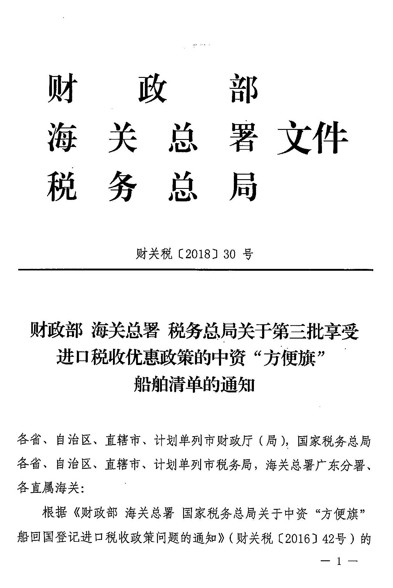 财政部 海关总署 税务总局关于第三批享受进口税收优惠政策的中资“方便旗”船舶清单的通知