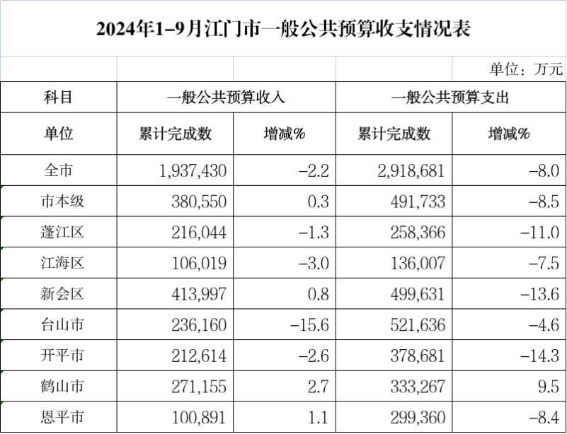 附件:2024年三季度江门市一般公共预算收支情况表