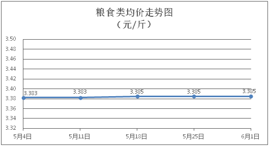 粮食类商品价格保持稳定。所监测的4种粮食类商品价格均持平,综合零售均价为每斤3.385元。其中:丝苗米、面粉零售均价分别为每斤3.50元、3.40元,环比均持平。