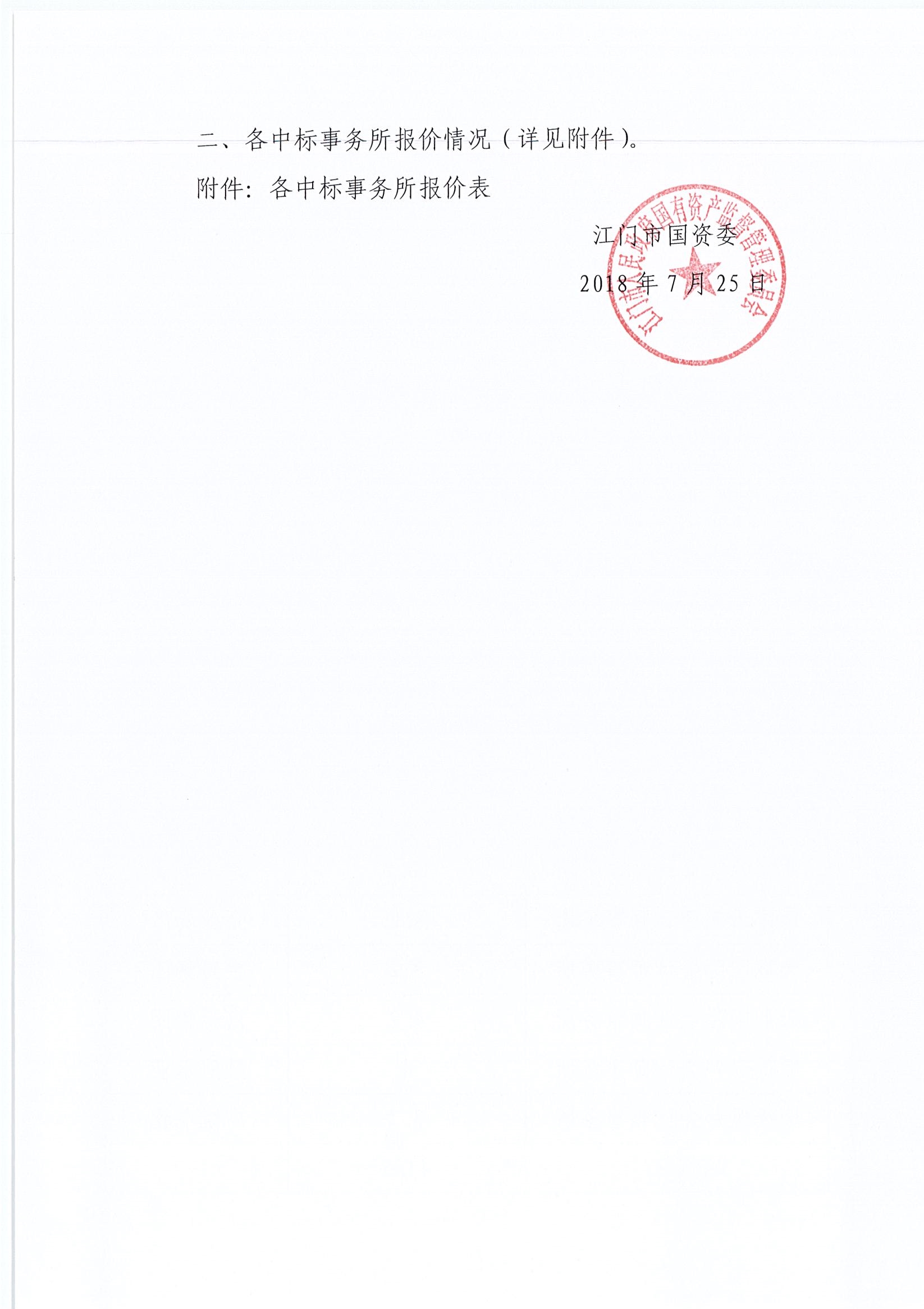 江门市国资委关于第一批审计服务项目 成交结果的公告