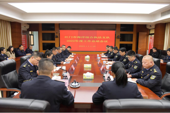 1月16日,市海洋综合执法支队召开2022年度工作总结会议,市农业农村局党组成员,市海洋综合执法支队党组书记、政委邓明芳主持,支队全体干部职工参加会议。