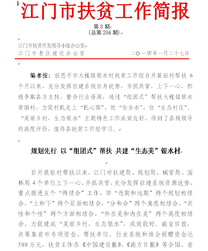 2014年江门市扶贫工作简报第8期(总第284期)