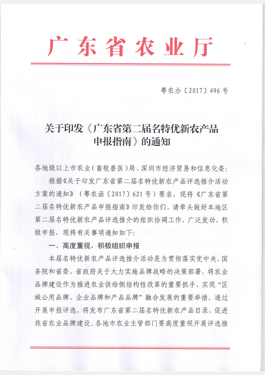 附件:关于印发广东省第二届名特优新农产品申报指南的通知(粤农办〔2017〕496号)
