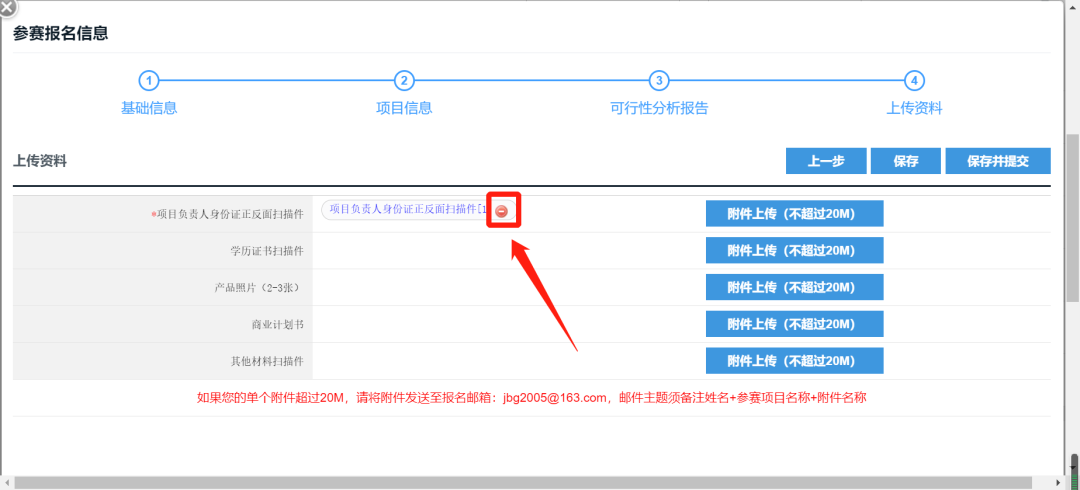(十四)到第四部分“上传资料”,上传一份资料要点击【保存】一次,同一附件中,上传第二份资料需在序号选择2,如此类推;