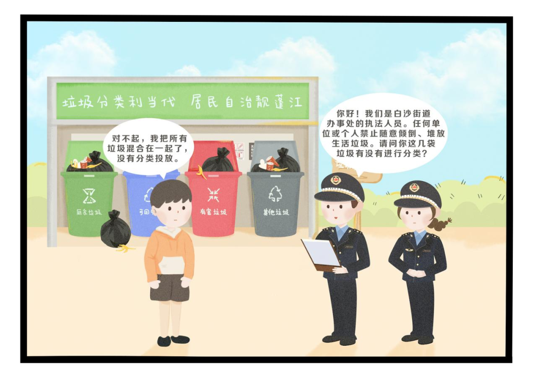 当然,执法并不是最终目的,居民分类意识及文明风尚的养成才是最终落脚点。白沙街道办事处的执法人员不仅是“执法员”,更是“宣传员”,在每宗垃圾分类案件中,都耐心进行普法宣传,从而进一步增强居民的垃圾分类意识。