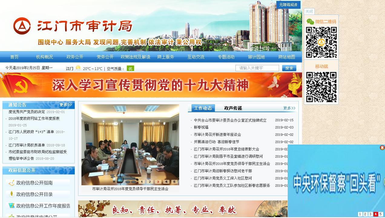 二是加强门户网站规范化建设。优化网站栏目设置,按照要求频次及时更新网站栏目内容,及时更新政府信息公开指南,更好提供审计工作信息公开服务;梳理政务服务事项,公开服务实施清单,包括行政处罚17个,行政强制4个,行政检查6个,其他9个;制定《江门市审计局政府信息公开工作过错责任追究制度》,加强对违反政府信息公开规定行为的责任追究,保证政府信息公开工作规范进行。加强网站安全建设,指定专人对局网站进行日常监测,发现问题及时整改。