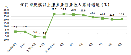 前三季度,全市规模以上服务业营业收入实现161.04亿元,同比增长20.9%,增速比1-8月加快0.3个百分点;两年平均增长11.2%。