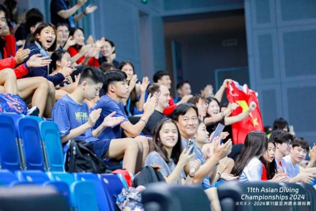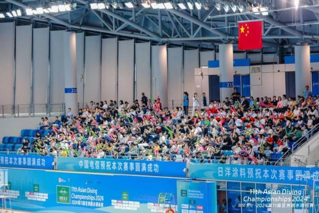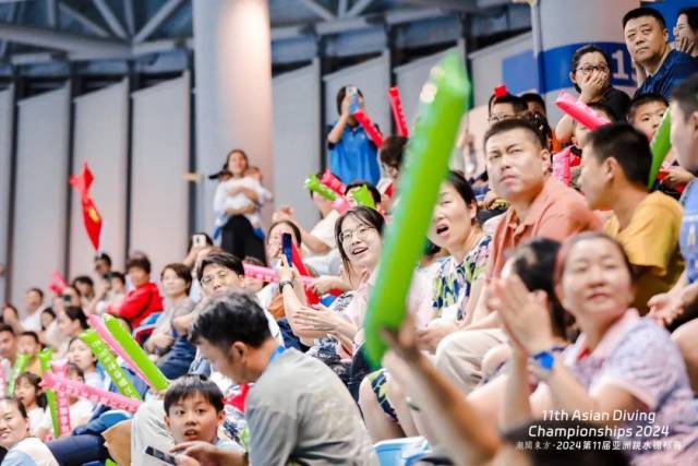 中国跳水队包揽了所有金牌,全场观众一同见证这卓越的成绩。观众们沉浸在比赛的氛围中,享受体育比赛带来的激情和快乐。观众的欢呼声和掌声几乎从未间断,他们的热情和支持成为了本次赛事的一大亮点。