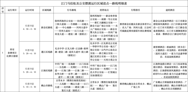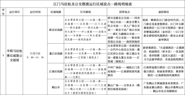 为方便外地跑友快捷顺利的到达五邑华侨广场领取参赛物资,组委会在2024年12月12日--12月14日特设置江门站、江门东站免费接驳车。