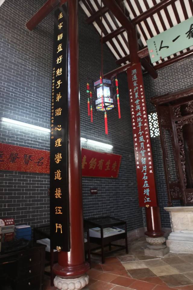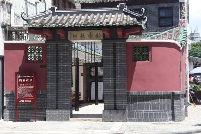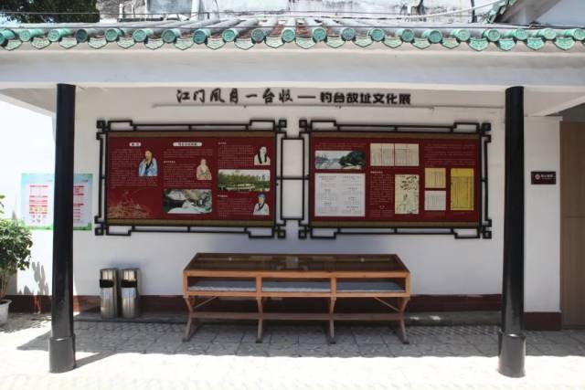 钓台故址位于江门市堤中路与钓台路交接处,坐西北向东南,清光绪十二年(1886年)重建。故址原是一座三进深院落,1927年因筑长堤路拆毁第一、二进建筑,仅存第三进后座建筑。现存部分总面阔6.56米,总进深7.41米,面积为48平方米。现存后座面宽进深各三开间、四柱穿斗式梁架结构,单檐布瓦硬山顶建筑。