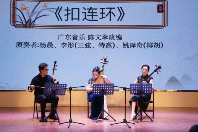 特邀嘉宾的加盟更是为演出增色不少,三弦演奏家李彤弹奏诙谐幽默,椰胡新秀姚泽奇演奏悠扬婉转,与琵琶的清亮音色相互交织,三人改编的《扣连环》让严老烈的经典之作焕发出新的活力。