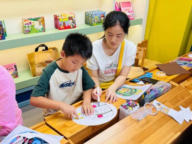 绘本讲读环节结束后,便进入了充满创意的绘画环节。本次绘画主题为 “校车和书包”,工作人员早已为亲子家庭准备好彩笔、卡纸等绘画材料。孩子们迫不及待地拿起画笔,在家长的陪伴和指导下,开始尽情发挥自己的想象力。