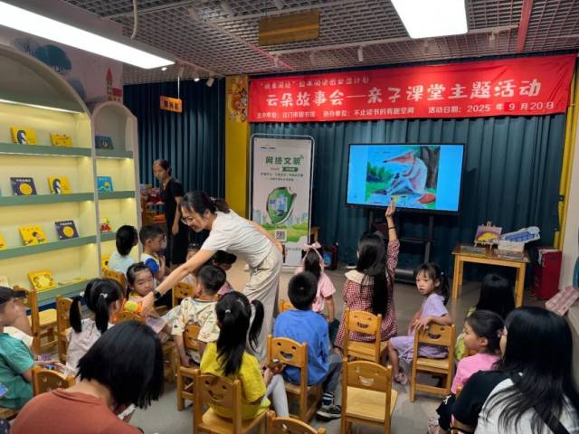 九月,“云朵绘本故事会” 连场开启,从晨光初照到夕阳斜映,小椅子换了好几拨雀跃的小身影,绘本里的故事也流转过不同篇章 —— 有时讲开学季的新奇相遇,有时聊网络世界的奇妙探索。每一场都有软萌互动、轻声欢笑,书页沙沙相互交织,把阅读欢喜满满填进图书馆的秋日时光。