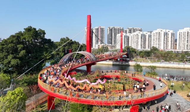 活动内容:醒狮、舞龙队伍沿着江门河两岸进行巡游,金龙腾挪翻飞,瑞狮摇头摆尾,祈祷新年的吉祥如意。