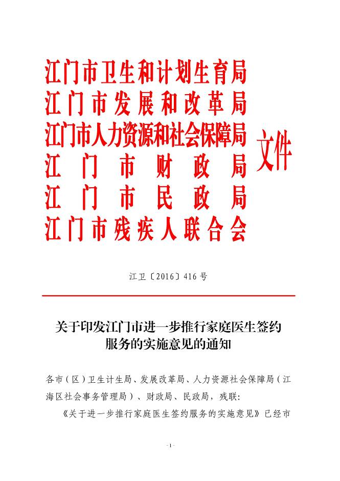 江门市进一步推行家庭医生签约