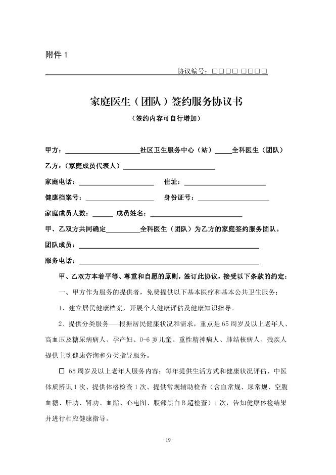 附件:1.家庭医生(团队)签约服务协议书