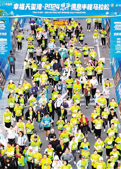 江门日报讯 (记者/胡伟杰) 12月22日早上7时30分,随着响亮的发令枪声响起,2024恩平温泉半程马拉松大幕拉开,近5000名跑者活力满满地冲出起跑线,迎着晨曦欢乐开跑。