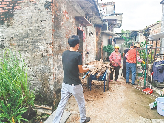 铁锹敲碎冷巷里堆积的砖石,铁铲清理闲置屋里的垃圾,铲车将岸边的杂物装车清运……连日来,为筑牢蚊媒传染病防控防线,清除冷巷、闲置屋等蚊虫孳生的“温床”,会城东甲村全面铺开灭蚊攻坚行动。区直机关单位党员干部、外市支援队,以及东甲村本地干部、村民代表等各方力量组成攻坚大军,日夜奔忙在该村16个村民小组,以“啃硬骨头”的劲头发起总攻,日均清理垃圾超20吨。