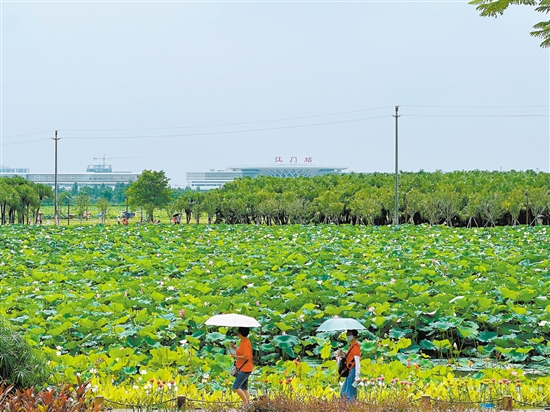 江门日报讯 (文/图 记者/李银换) 眼下,正值暑期旅游旺季,我市各地景区景点,处处活跃着旅游者的身影。此时,我市各地荷花竞相开放,在池子里亭亭玉立,美不胜收,吸引了众多市民游客前往观赏。