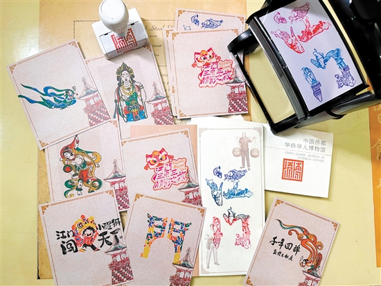 侨博馆里有各色各样的印章,吸引广大游客前来盖章。