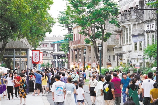 赤坎华侨古镇游人如织。