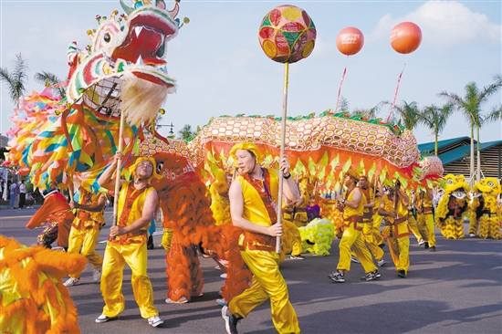 “很精彩”“有意思”……现场,刚刚下车抵达嘉年华现场,侨胞们就被精彩的纱龙表演吸引住,连连发出赞叹。他们中有的认真倾听导游讲解,深入了解家乡的传统文化,有的则立即掏出手机,争相拍照留念。