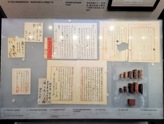 在开平市博物馆1号展厅,摆放着一批珍贵的银信。在柔和的展厅灯光下,虽然不少银信纸本已有些泛黄,但字迹依然清晰可见,字里行间诉说着魂牵梦绕的乡愁。