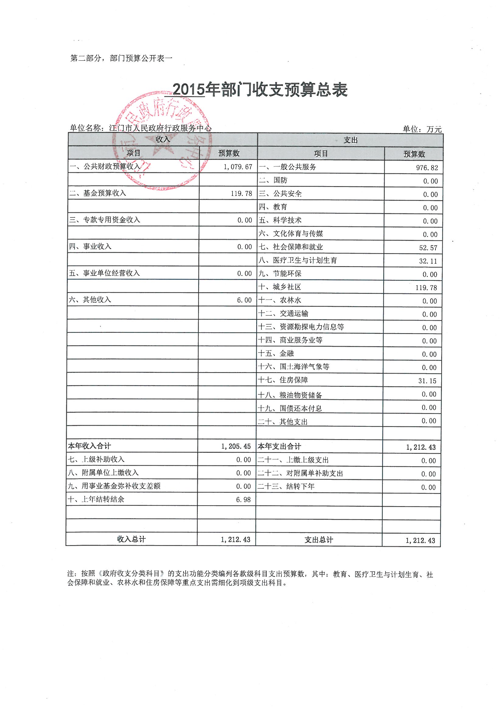 第一部分2015年江门市人民政府行政服务中心预算基本情况说明