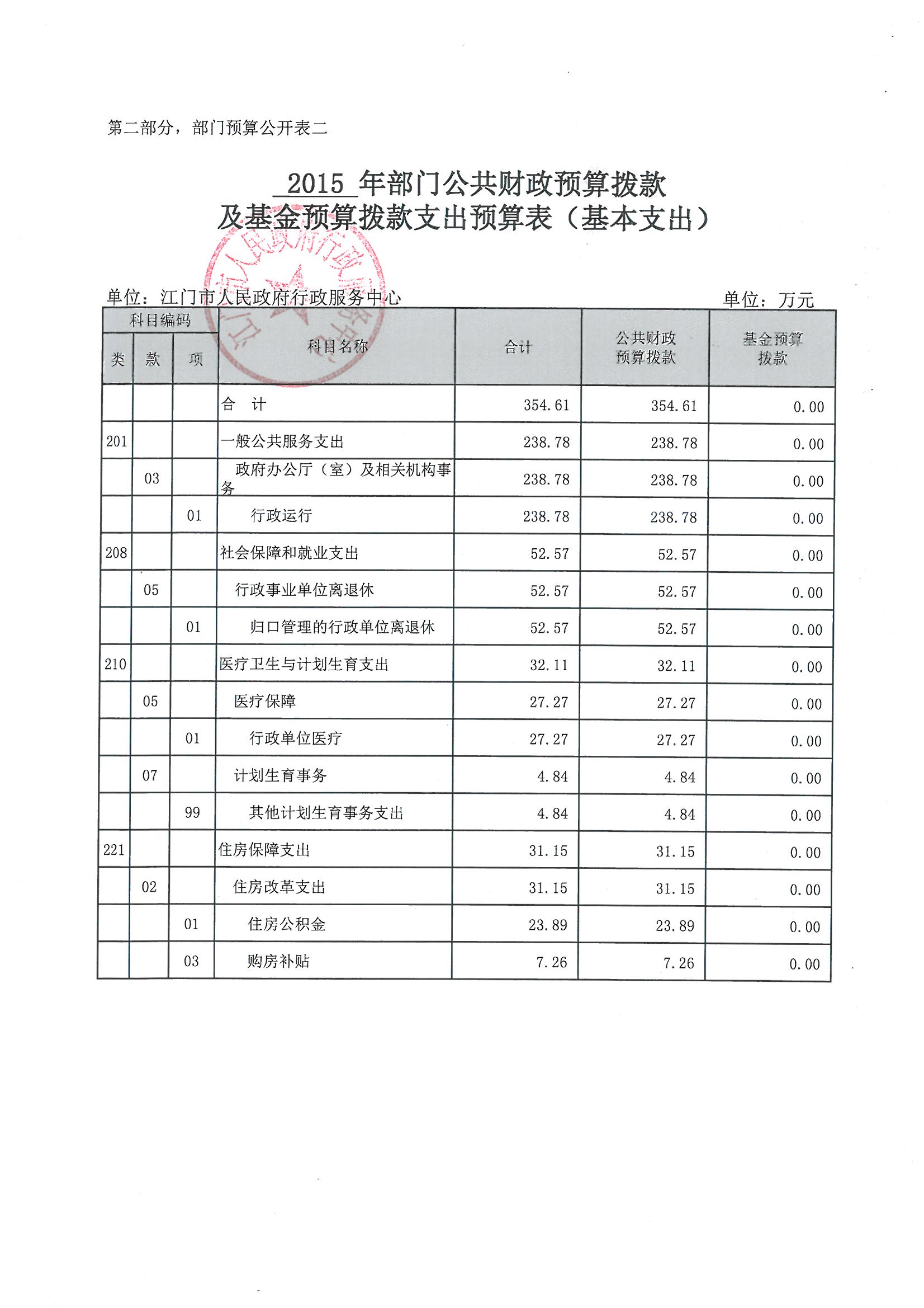 第二部分 2015年江门市人民政府行政服务中心部门预算表