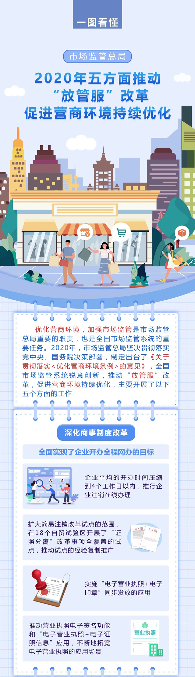 一图看懂 | 市场监管总局2020年五方面推动“放管服”改革 促进营商环境持续优化